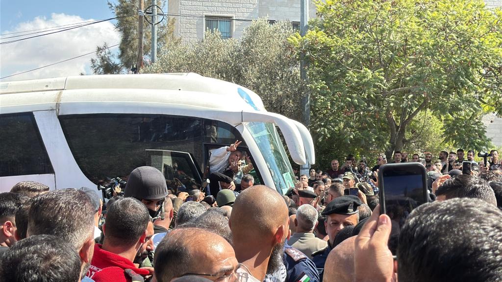 上午11时40分许,以军押送车辆驶出监狱。近12时30分,国际红十字会的大巴载着获释人员抵达拉姆安拉文化馆。