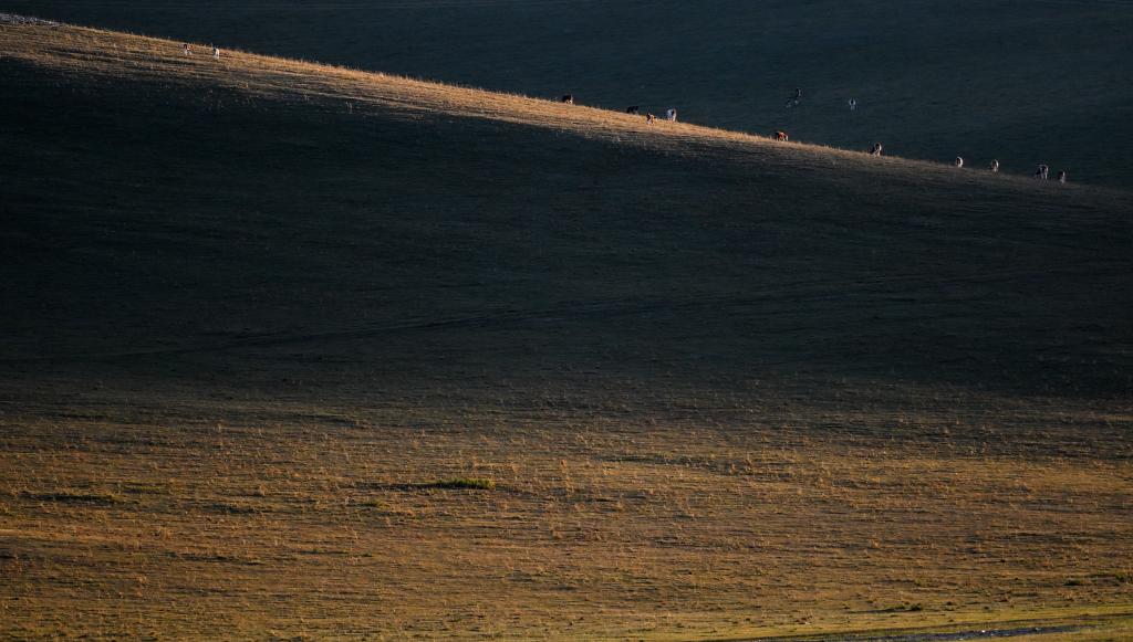 9月19日,畜群在草原上觅食。新华社记者 连振 摄