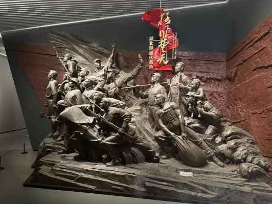 队员们的实践之旅首先从湖北省博物馆开启。在这座承载着历史记忆的建筑里,队员们穿梭于各类珍贵文物之间,实地考察了博物馆在客流监测、文物保护以及游客服务等方面的情况,积极探寻智能导览系统的优化方向、客流分析算法的应用场景等技术与实际工作的融合点。面对“湖北现当代英杰”主题雕塑群,队员们深切体会到博物馆作为红色文化传播载体在治理层面的重要价值,并围绕“AI如何助力红色文化传播”这一课题展开了沉浸式的调研。