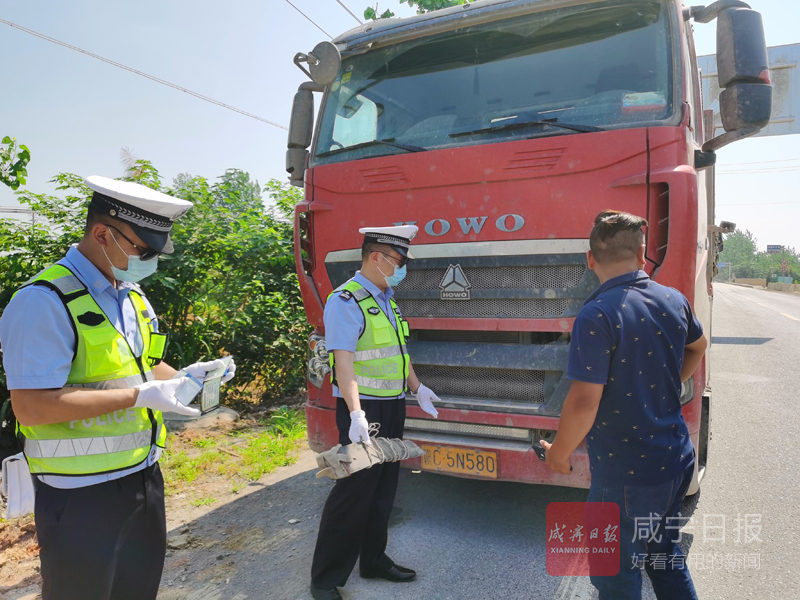 咸宁网讯(香城都市报记者 方达星 通讯员吴振宇)“你的车牌旁怎么有只手套?是不是用来遮挡号牌的……”6月8日上午,在G351国道双溪路段,一辆可疑的大货车被现场执勤交警拦了下来。