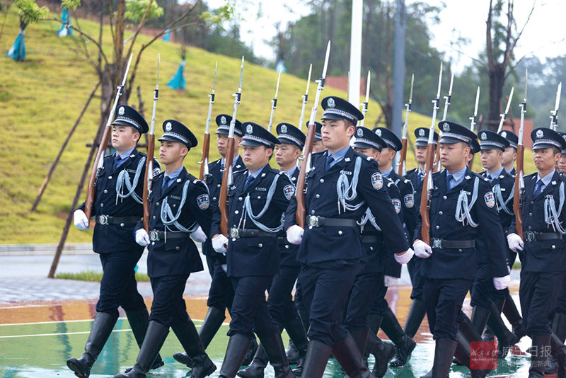 晨风微凉,秋意渐浓。9月1日早晨7时,咸宁市第一高级中学的操场上,一场特殊的升国旗仪式正在庄严举行。咸宁市公安局特警支队40名特警组成的国旗班,迈着铿锵有力的步伐护卫国旗入场。在全校师生的注视下,鲜艳的五星红旗随着朝阳冉冉升起,为新学期拉开了庄严的序幕。