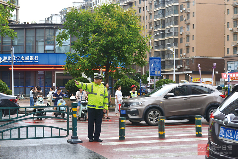 当日上午7时30分许,在咸宁实验外国语学校门口,同样洋溢着温暖与守护。“同学,雨后路滑,要慢慢走。”“家长请即停即走,避免拥堵!”身着制服的交警正在细心疏导车辆,公安民警与学校老师站在校门两侧,微笑着迎接迈进新学期的孩子们。