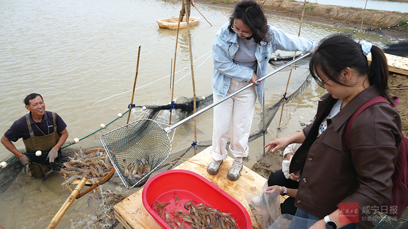 “品丰收——鲜‘品’盛宴”环节更是让人大饱口福。在嘉鱼罗氏沼虾互动体验区,嘉宾与游客分批前往现代化沼虾生态养殖基地,实地察看虾苗生长环境与科学管理模式。沉浸式捞虾区里,大家手持专业虾笼下水捕捞。“第一次捞虾,既紧张又好玩!”现场一群众兴奋地说。