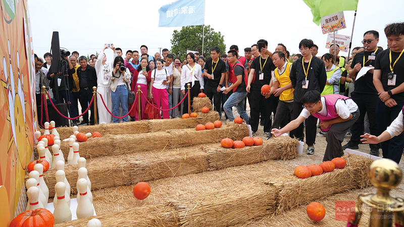 “趣丰收——农趣争霸”农民运动会笑声不断。“运粮接力”“南瓜保龄球”“瓜果套圈”“秋收拔河”等比赛项目既贴近农事,又充满趣味,参赛选手们你追我赶,观众呐喊助威,现场气氛热烈。