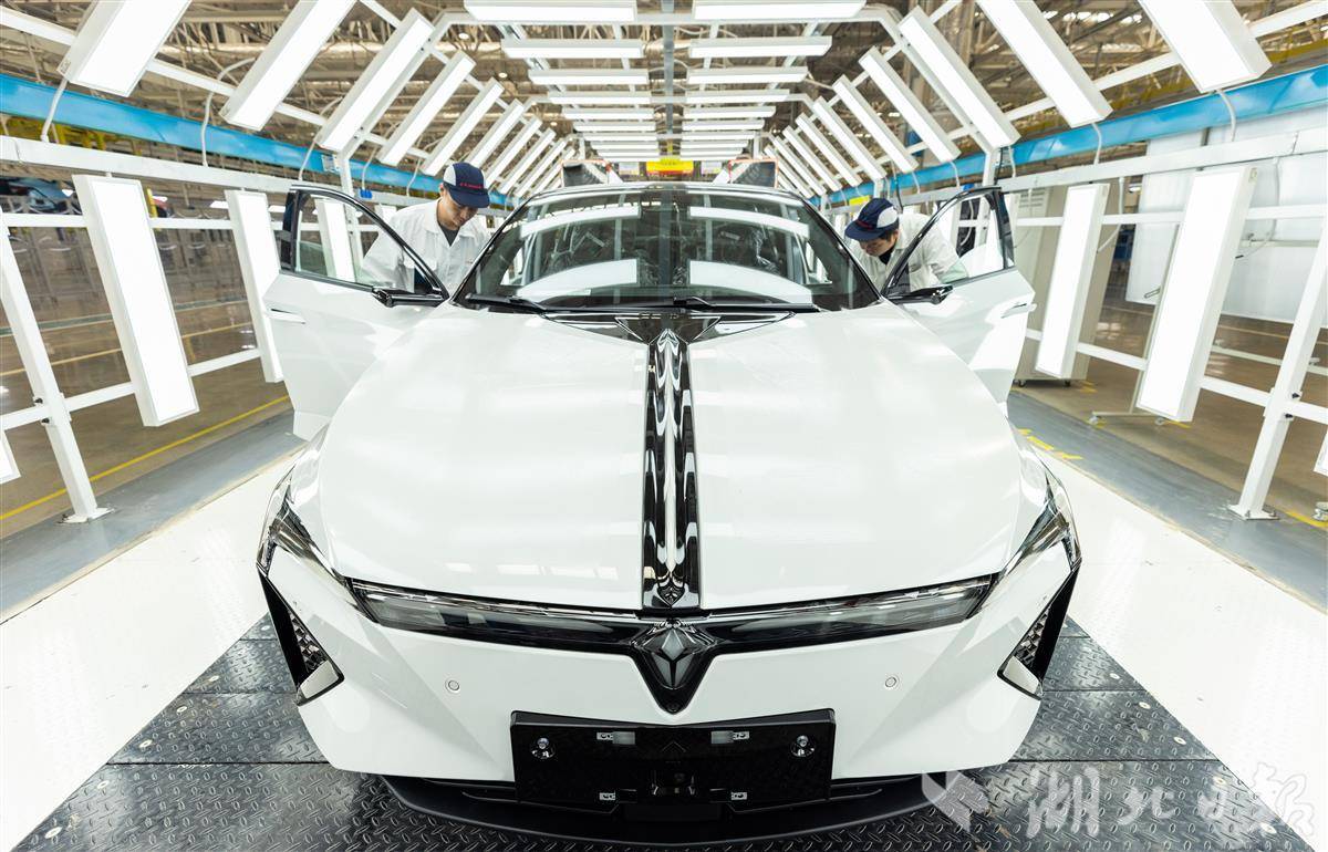 武汉经开区,工人在东风本田新能源工厂加紧生产新车。这是本田全球首个基于“智能、绿色、高效”打造的新一代新能源工厂,也是东风本田在武汉建成投产的第4个工厂。(湖北日报全媒记者 柯皓 摄)