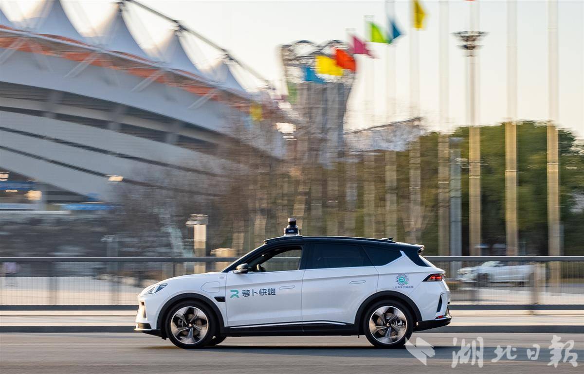 无人驾驶汽车行驶在武汉经开区路段。(湖北日报全媒记者 柯皓 摄)