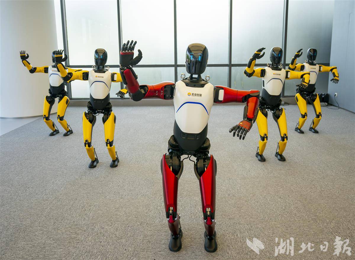 举杠铃、直膝行走、与人微笑互动、被推倒后迅速站起……2月5日,湖北“新春第一会”上, “劳动者”“荆楚”等10款人形机器人...