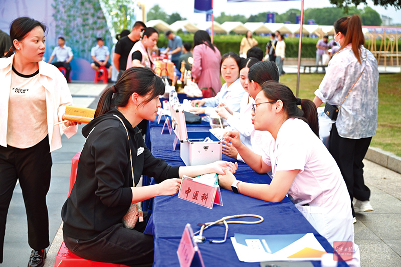 中医药文化展示区同样人气十足。咸宁市中医医院、咸宁市第一人民医院通过义诊、药膳品鉴、游戏互动等形式,让市民近距离体验中医推拿、艾灸、贴敷等项目,感受中医药文化的独特魅力,成为现场一道别样的健康风景线。