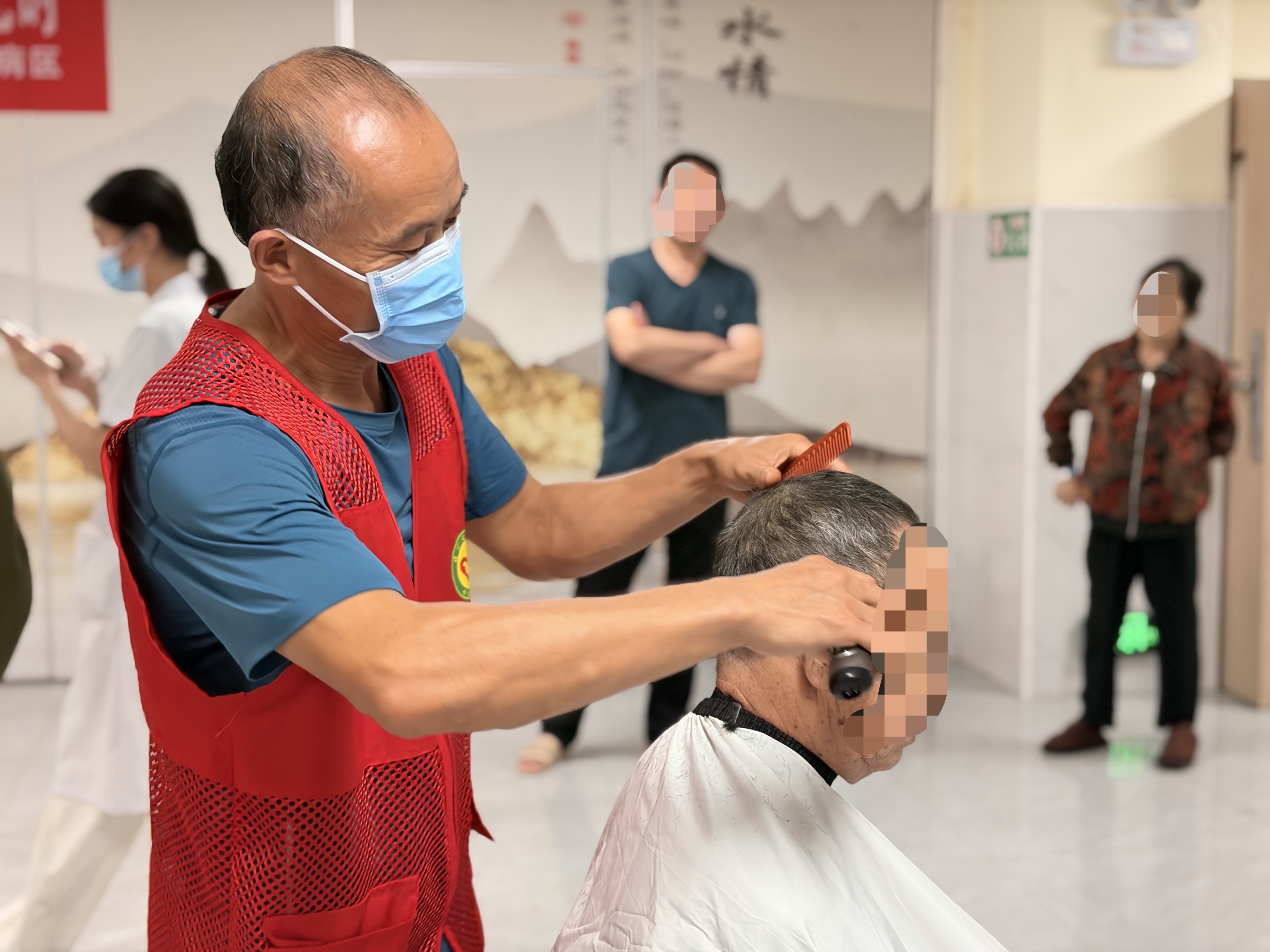 此外,志愿者们还分组为老人们提供理发、剪指甲服务,他们耐心的询问老人“想要什么样的发型 ?”“这样的长度可以吗?”等等;剪指甲时,志愿者们提前对指甲刀进行了消毒处理,动作轻柔地为老人修剪指甲,对于情绪稍显不安的老人她们耐心安抚,用轻柔的动作与温和的话语缓解他们的紧张,整个空间里没有华丽的布置,却因这份细致与用心显得格外温暖。