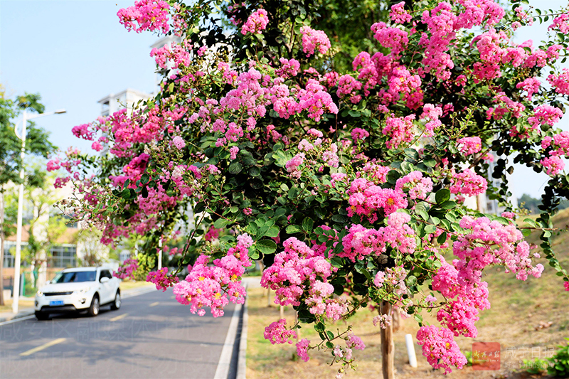近日,咸安城区,紫薇花热烈绽放,宛如一幅绚丽的画卷。艳红的花朵似火般炽热,又像被风揉碎的云霞,在车水马龙间肆意流淌,尽显灼灼风姿。它们无畏骄阳的炙烤,将粉红、雪白、淡紫的花簇骄傲地托向天空,恰似一群灵动的夏日精灵,在枝头欢快地跳着圆舞曲。每一朵紫薇花都似在轻声呢喃:生命就应如这夏花,既能承受住烈日的重重淬炼,也能耐得住静默时光的寂寞,在属于自己的季节里,绽放出最动人的光彩。 通讯员 吴涛 摄