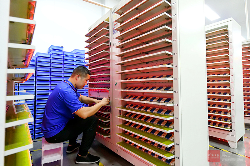 9月8日,位于咸安区凤凰科创园的柔电科技混合电池电容器生产基地内,机器高速运转、工位繁忙。