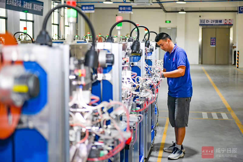 近日,在湖北玛耐伦科技有限公司二期车间,工作人员在新设备上加工抗磁电子产品。