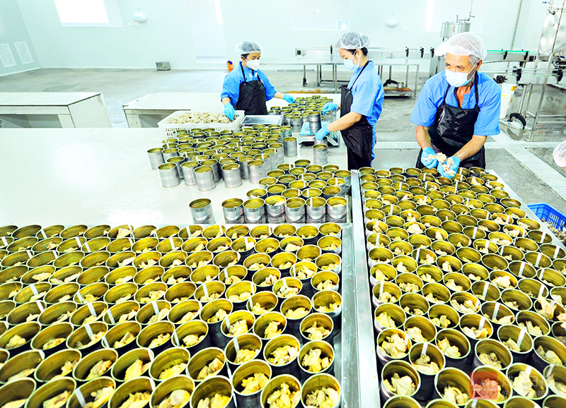 9月11日,咸宁贺胜桥汤业食品有限公司生产车间,工人们正在生产线上有序忙碌。