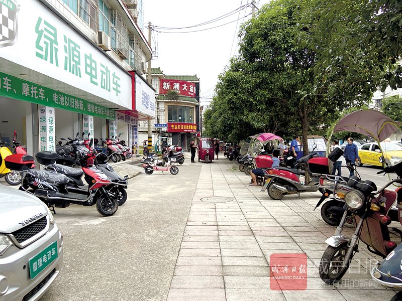 一家名为“绿源电动车”的店铺,将几台电动车公然摆在店外售卖,占据了街道不少位置。一位市民从这里经过时,不得不小心绕开。